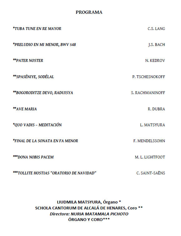 ЛЮДМИЛА МАЦЮРА — орган и хор SCHOLA CANTORUM, дирижёр НУРИЯ МАТАМАЛА ПИЧОТО