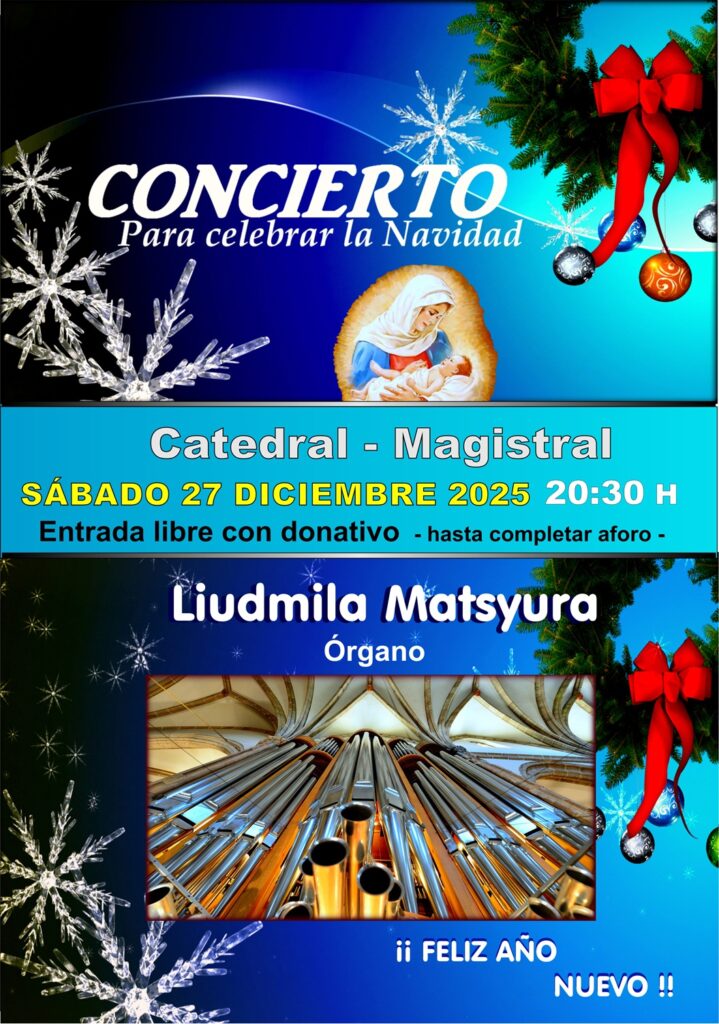 December 27, 2025 8:30 PM 20th CHRISTMAS CONCERT at the CATHEDRAL LIUDMILA MATSYURA, organ, with a participation of IVÁN IUDIN, violin News on HenaresHoyTV esHoyTV